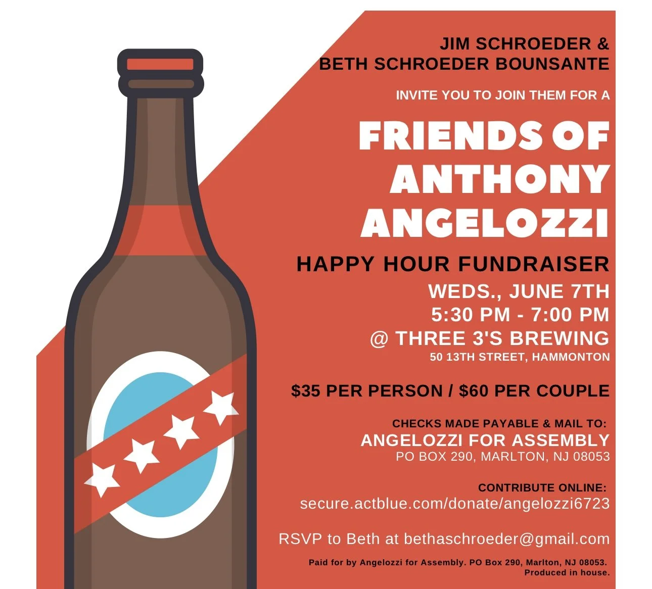 Friends of Anthony Angelozzi Happy Hour @ Three Threes Brewery Wednesday, June 7, 2023 5:30 PM 7:00 PM 17:30 19:00 Google Calendar ICS