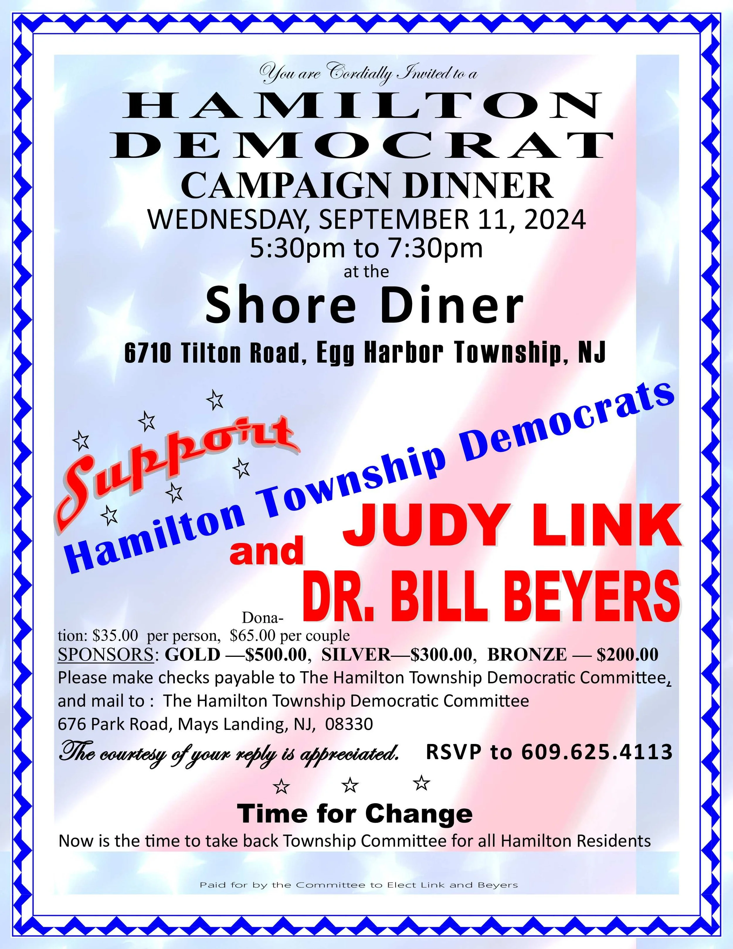 Hamilton Democrat Campaign Dinner Wednesday, September 11, 2024 5:30 PM 7:30 PM 17:30 19:30 Google Calendar ICS